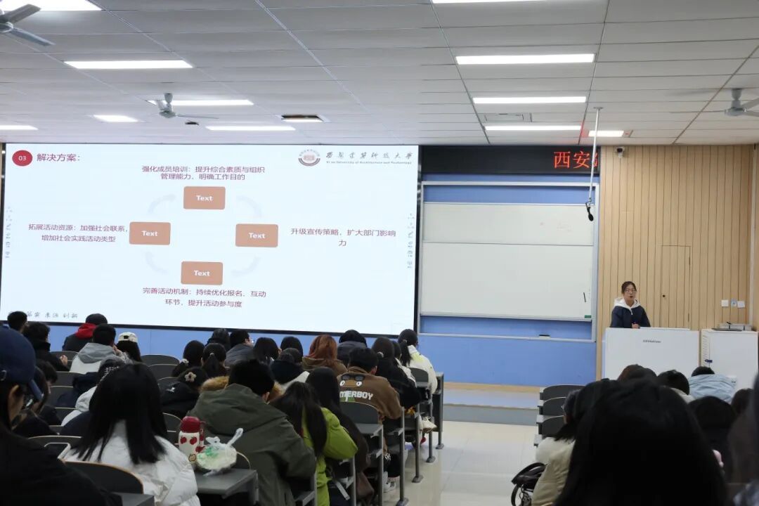 随后,各部门代表立足自身职能,进行了专项分享。他们分别就竞赛中的组织协调、科技立项、社会实践、宣传推广及志愿服务支持等关键环节进行了细致解读,帮助同学们清晰了解学院的资源支持体系,为未来高效备赛奠定了基础。
