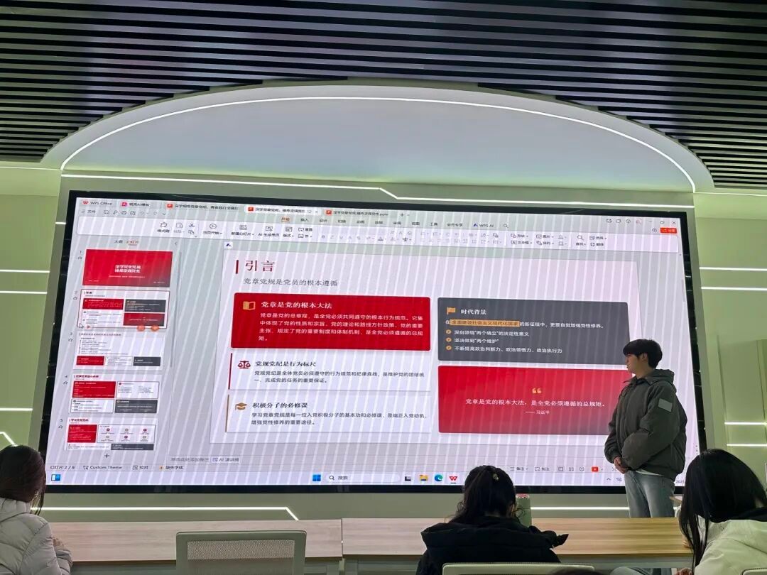 为进一步强化入党积极分子的理论武装、筑牢信仰之基,公共管理学院本科生第一党支部于2025年12月21日在学府城1-408开展"深学党章党规,锤炼坚强党性"主题党日活动,本次活动由公管2301姚舜译、公管2301甄学雄、文管2502高依凡三位同学进行汇报分享。