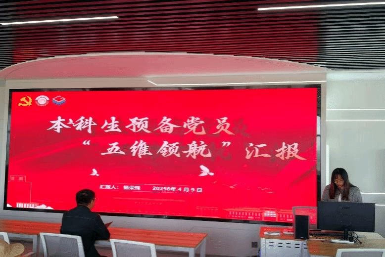 杨荣珠围绕“本科生预备党员五维领航汇报”主题进行汇报,从筑牢思想根基、夯实专业基础、躬身实践服务、行为示范引领和全面成长突破等五个方面,阐述了自己在职业规划、科创竞赛、社会实践、志愿服务方面的发展情况。未来,她将继续以“五维领航”体系为标准,发挥党员先锋模范作用,在学习中克服自身弱点,不断发展完善自己。