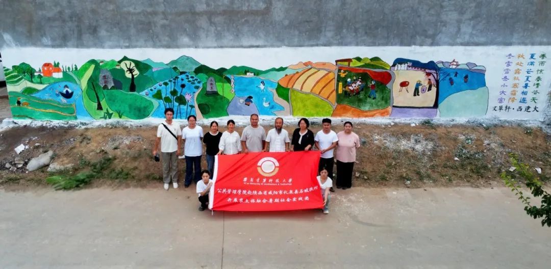 在文化强国建设的背景下,乡村文化建设是推动农文旅融合,实现乡村振兴的一条重要路径。为深入践行乡村文化振兴战略,助力乡村文化发展,西安建筑科技大学公共管理学院于2025年8月22日赴陕西省咸阳市礼泉县石坡扶村开展为期两天的农文旅融合实践活动。建大学子以青春之笔,用艺术点靓乡村,与文翠轩共同创作了总面积逾100平方米的墙绘作品。