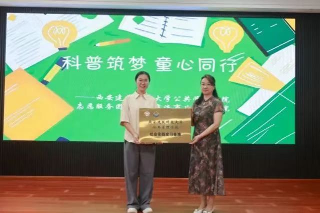 此外,公管学院 “科普筑梦,童心同行” 实践队赴商洛市儿童福利院开展实践,推动校社长期合作落地。在校社长期合作层面,实践队与福利院搭建长效合作桥梁,由刘楠与福利院负责人共同完成实习基地授牌,打破短期志愿服务局限,为校社双方后续持续联动、深化合作奠定基础,开启校社协同服务未成年人的新篇章。实践队成员围绕文化传承与科学启蒙,以 “五育并举” 为导向,为福利院儿童开展科普课堂系列实践活动。此次商洛市儿童福利院之行,实践队不仅用科普点亮了孩子们的夏日时光,更以建立实践基地的实际行动,为校社长期合作开启新篇章。队员们也在服务中深刻体会到保护未成年人的意义,更明确了大学生志愿服务 “从短期助力到长期深耕” 的价值。
