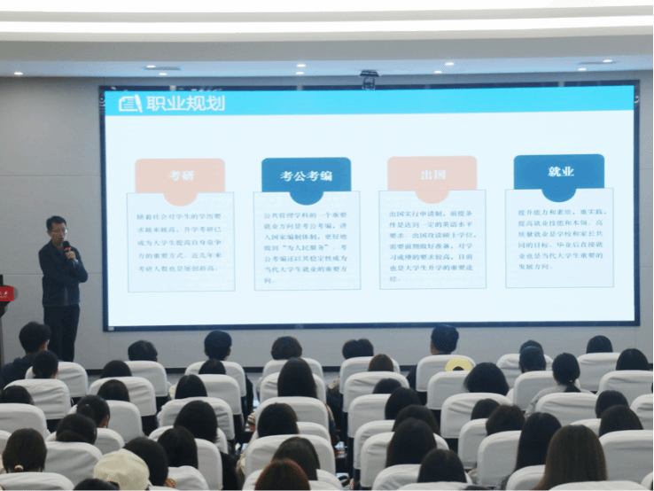 此外,大会还建议新生优先关注心理健康,通过社团、实践拓展交际圈,以良好习惯维护宿舍关系,重点培养“读、讲、写”技能;孙泽亮同步介绍考研、考公考编、出国、就业四条规划路径,引导新生提前谋划未来。