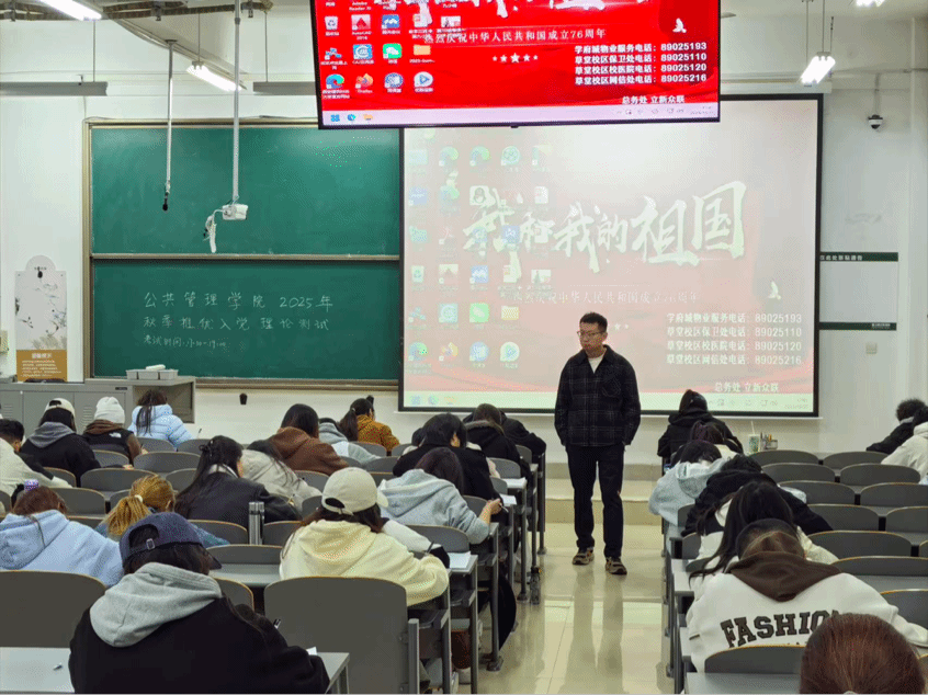 为扎实推进党的组织建设,切实提升共青团员政治理论素养,公共管理学院于2025年10月21日晚,在学府城8-104、8-105、8-106、8-107、8-108教室开展推优入团、推优入党及党校入学考试,为党组织选拔储备优秀青年力量。