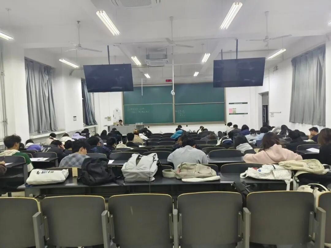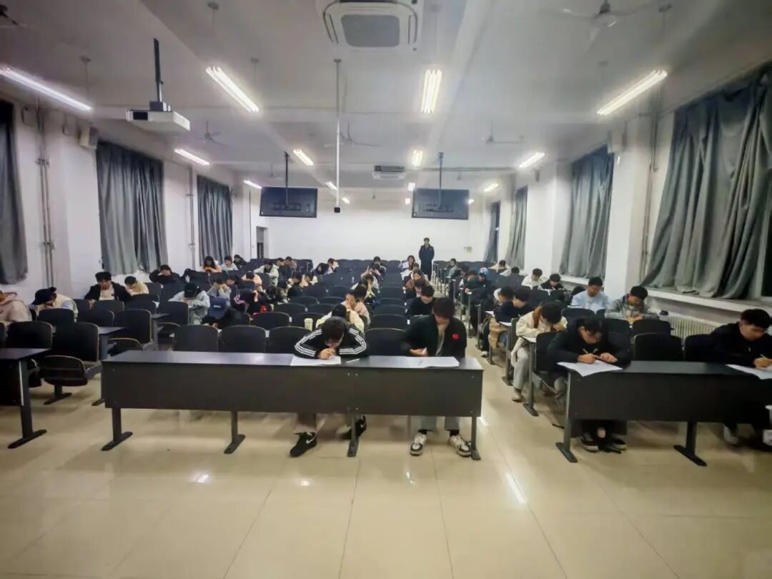 考试开始前,同学们准时到场、有序就座,主动将手机等通讯设备交至指定存放区域,自觉遵守考场纪律。考试期间,同学们态度认真,沉着作答,展现出良好的学习风貌;监考员们在考场中认真巡考,维护考场秩序,保障考试规范有序进行。2025级辅导员孙泽亮老师亲临考场巡视,密切关注考场秩序与同学们的答题状态,以细致督导保障考试平稳推进。