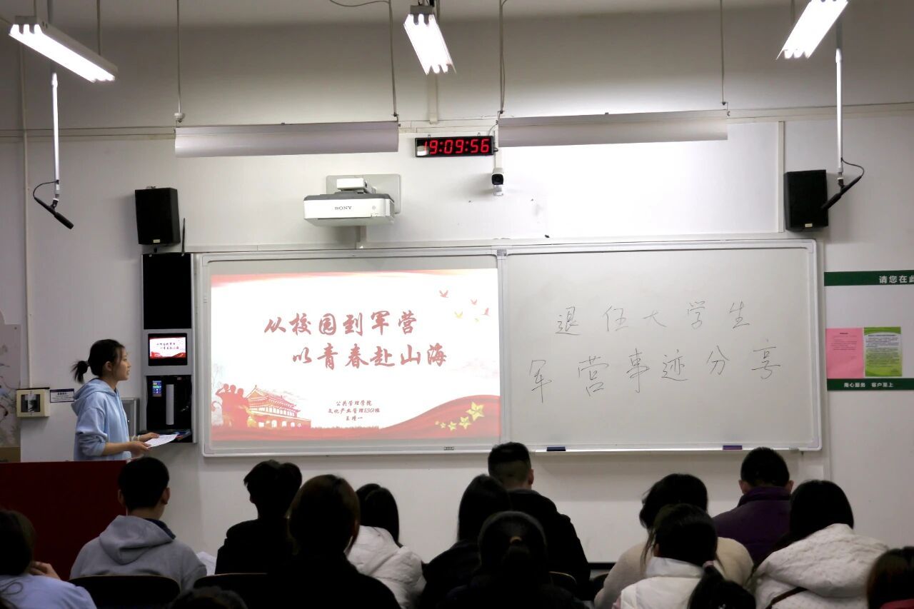 “他们曾用脚步丈量国境线,如今用知识探索新边界。”为进一步激发青年学子参军入伍的热情,进一步落实国家征兵工作相关要求。公共管理学院于2025年12月8日19点,在学府城16-111开展退伍大学生军营事迹分享暨退役复学欢迎会。本次会议由2024级本科生辅导员强靖淇主持,文化产业管理专业2301班王瑾一、文化产业管理专业2402班成成主讲,部分学生代表参与此次分享会。