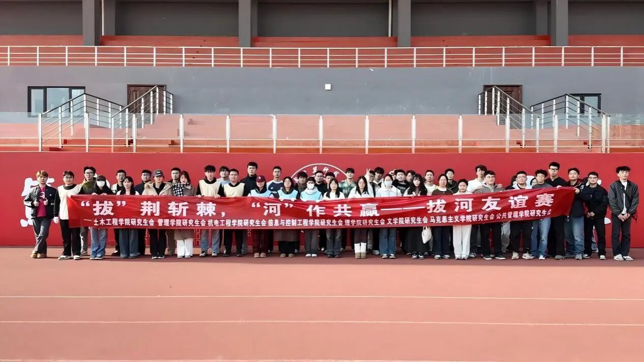 12月10日周三中午12点,南山操场人声鼎沸、热血满格,“‘拔’荆斩棘 ,‘河’作共赢”研究生拔河友谊赛圆满开展。机电工程学院、管理学院、土木工程学院、信息与控制工程学院、理学院、文学院、马克思主义学院、公共管理学院八大研究生会组织各学院学生参赛,以绳为桥聚合力,以赛传情显担当。