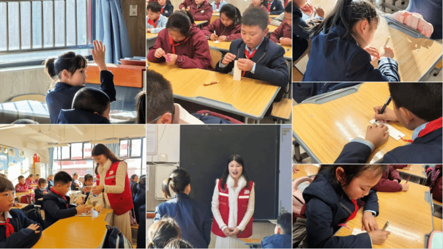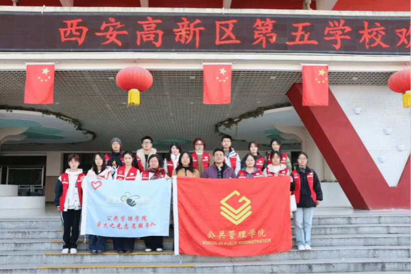 2025年12月15日,公管学院萤火之光志愿队走进高新第五学校,围绕“从鸡排哥走红看公共事件”的理性思考、“弘扬两弹一星精神”的家国情怀与“假如国宝会说话”的文化自信三大核心主题,开展趣味科普宣讲活动。志愿者们通过生动的讲解与互动,为百余位四至六年级小学生搭建起思想启蒙与价值引领的成长课堂,让红色精神与文化自信在孩子们心中落地生根。
