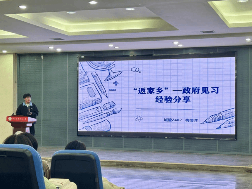 实践动员展风采。会议还对学院运动会相关事宜进行部署,明确运动会参与要求,鼓励各班遵守赛场纪律、展现良好风貌。城管2401班梅博洋结合自身经历,分享了“返家乡”政府见习经验,为同学们参与社会实践提供了有益借鉴。