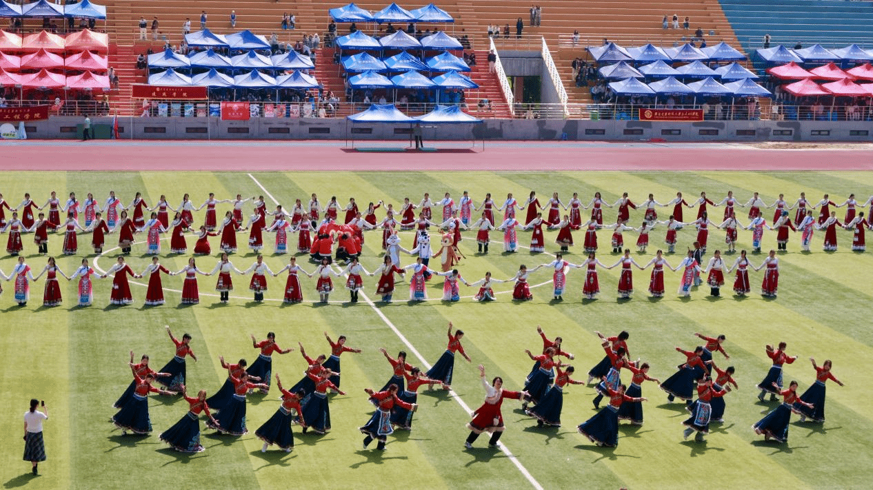 我院学子亮相开幕式表演,展示“阳光体育”活动,绚丽多彩的民族服饰在奔跑与舞步间交织出中华文化的多元画卷,青春的身姿在刚柔并济中诠释着传统美学的时代新生。这场表演不仅是艺术的绽放,更是公管学子以阳光之姿、团结之力,向传统文化致敬的生动实践。
