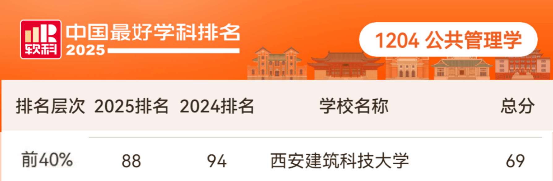 西建大公共管理学科进入全国前40%,较去年排名提高6个名次。根据软科排名指标体系,公共管理学科的评价涵盖人才培养、平台项目、成果获奖、学术论文、高端人才五大指标类别,下设19项细分指标,共计200余项观测变量。