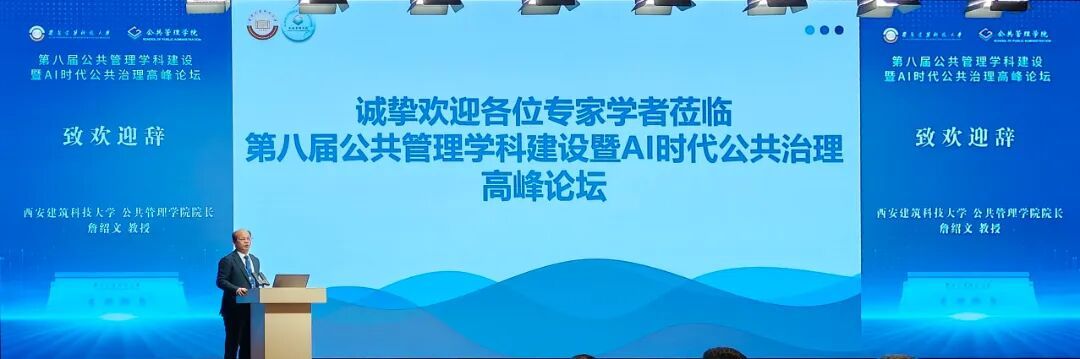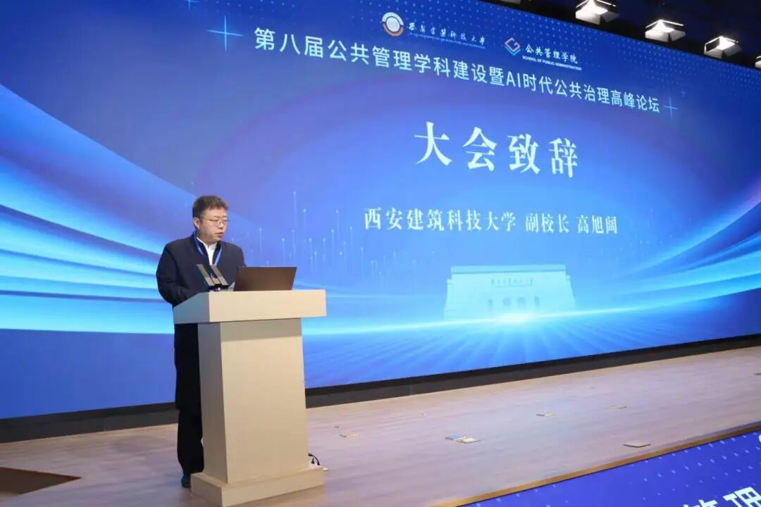 4月11日,“第八届公共管理学科建设暨AI时代公共治理高峰论坛”在我校雁塔校区召开。本次论坛由西安建筑科技大学公共管理学院主办,中国城乡建设与文化传承研究院、陕西省新型城镇化和人居环境研究院、文化符号数字转化及创新应用技术研究中心、文化遗产治理与城市可持续发展学科创新引智基地协办。会议邀请了清华大学、中山大学、南京大学、浙江大学、西安交通大学、兰州大学、华中科技大学、天津大学等多所院校专家学者齐聚一堂,他们带着前沿的学术成果与深刻的行业洞见,为本次论坛注入了高质量的思想活力,围绕“AI时代公共治理”展开深入交流。我校副校长高旭阔,公共管理学院领导、全体教师、研究生及校外同行参加会议。论坛设置开幕式、主旨报告、嘉宾与谈以及闭幕式四个环节。开幕式由公共管理学院党委书记郭斌教授主持。