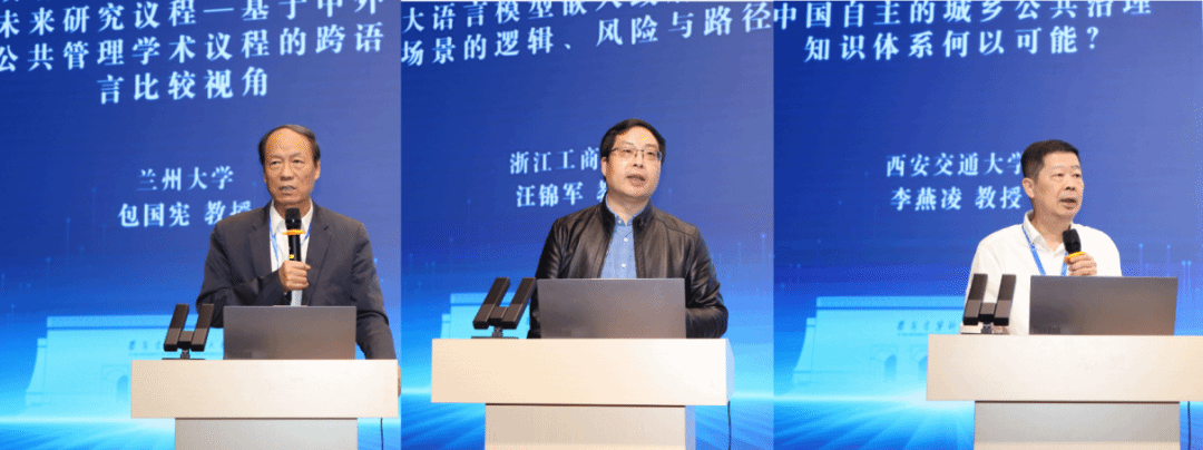 第三阶段主旨报告由公共管理学院副院长任云英教授主持。兰州大学包国宪教授以“政府绩效管理的大问题与未来研究议程——基于中外公共管理学术议程的跨语言比较视角”为题发表演讲。浙江工商大学汪锦军教授就“大语言模型嵌入政府治理场景的逻辑、风险与路径”展开讨论。西安交通大学李燕凌教授以“中国自主的城乡公共治理知识体系何以可能?”为题进行了系统阐述。
