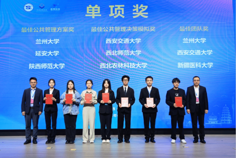 闭幕式上,答辩赛评委组组长、北京理工大学管理学院院长唐葆君教授对大赛进行总结点评,她充分肯定了各参赛队伍的精彩表现与西北赛区高校的人才培养成效。闭幕式现场公布并颁发特等奖、一等奖、二等奖及最佳公共管理方案奖、最佳决策模拟奖、最佳团队奖等多项荣誉,与会嘉宾为获奖队伍颁奖并为评委专家颁发聘书。闭幕式由公共管理学院党委书记郭斌主持。