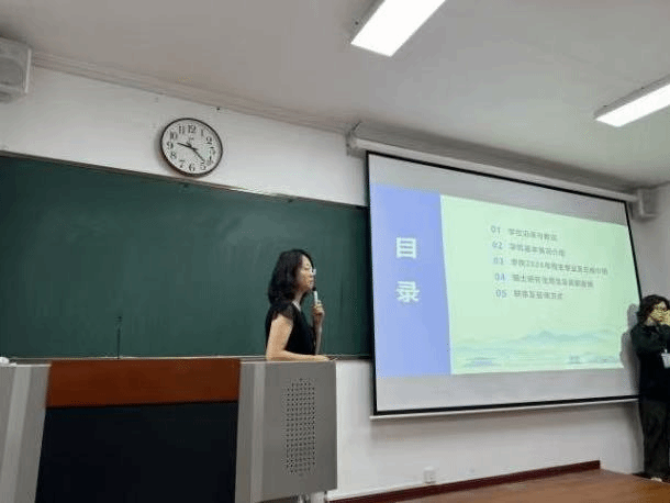 随后,胡金荣老师介绍了社会保障方向与养老团队的建设情况,重点分享了由西安市民政局主办、我校公共管理学院承办的“2025年西安市区县民政部门养老干部及养老机构负责人培训班”所取得的良好社会反响。此外,她还展示了该团队历年的横向与纵向科研项目、学生培养成果及就业情况,鼓励同学们报考社会保障研究方向。