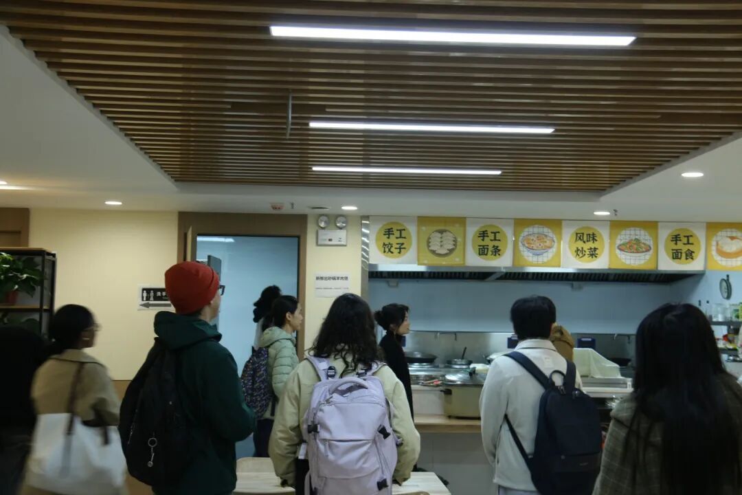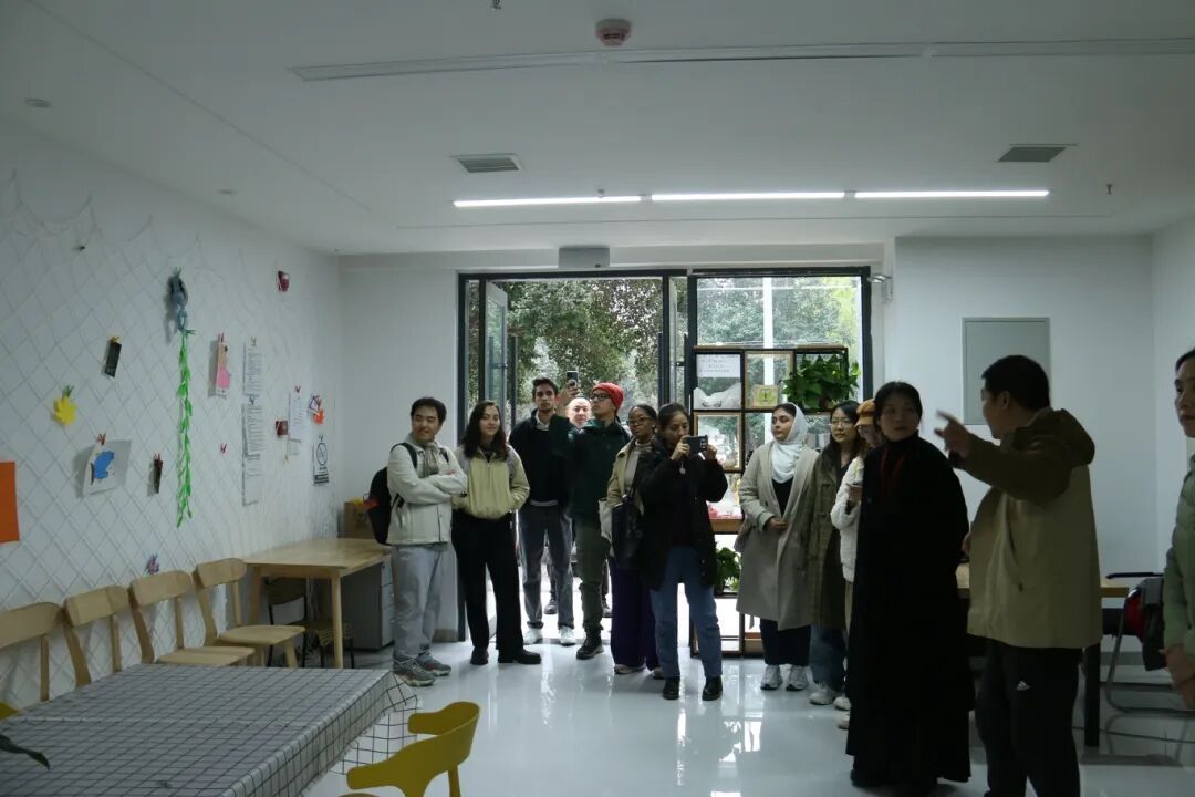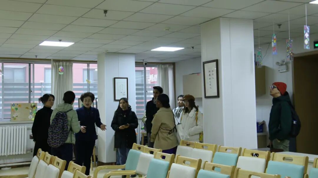 如果说长兴社区展现了系统化的服务布局,中堡子社区则呈现出更具“烟火气”的嵌入式形态。师生们走入街巷中的社区食堂、中医诊所、活动站与老年人日托中心,发现服务空间以店面形式灵活嵌入居民生活动线,形成了一张贴近需求、灵活多样的“功能拼图”。留学生们对这种“下楼即享”的服务模式表现出浓厚兴趣,并就中外社区服务差异展开热烈讨论。