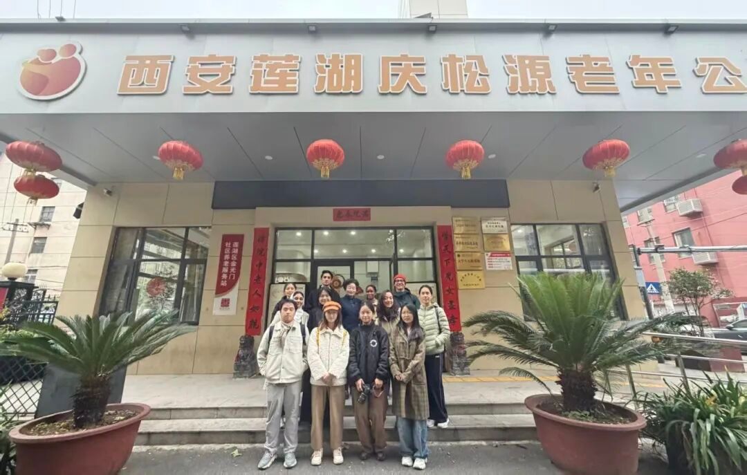 为深化理论教学与实践融合,拓展学生的跨文化治理视野,11月6日,我院组织师生团队赴西安市莲湖区,围绕“嵌入式服务与养老模式创新”开展了一场沉浸式研学活动。本次活动由“智慧养老与健康管理”微专业负责人胡金荣教师、体育学院单玉霞共同带队,汇聚了6名国际留学生(《社会组织管理》课程学生)与4名“智慧养老与健康管理”微专业本科生,在多元学科背景与文化视角的碰撞中,共同探索基层治理的创新路径与服务设计的温度细节。