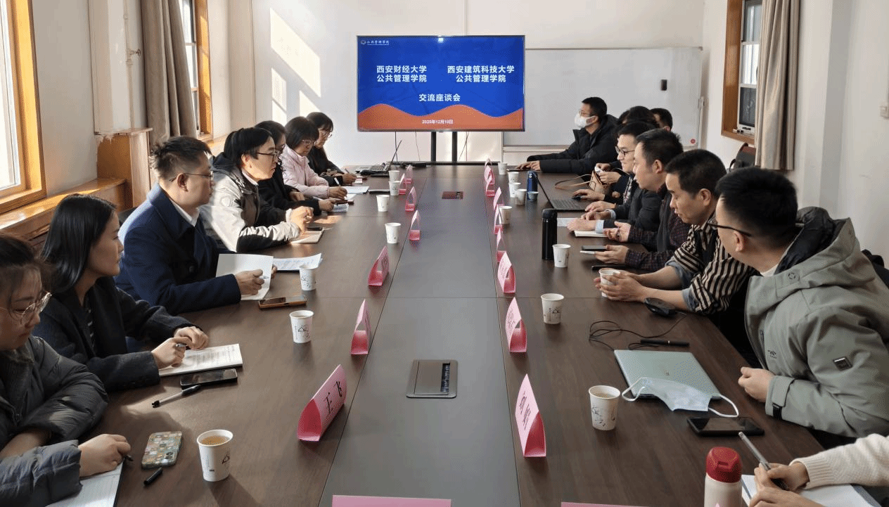 2025年12月10日,西安财经大学公共管理学院副院长钟海、院长助理黄欢、公共事业管理系主任冀梦晅、行政管理系李慧玲等一行到访我院,双方就本科生人才培养、公共事业管理专业改造等开展座谈交流。我院党委副书记、副院长庞传涛,公共事业管理系主任李博、系支部书记胡金荣、公共事业管理专业负责人靳永翥等教师参加座谈交流。座谈会由庞传涛主持。