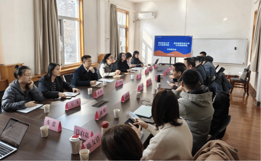 座谈会上,庞传涛首先代表学院对西安财经大学公共管理学院一行到访表示热烈欢迎,并简要介绍了我院在学生培养、师资队伍建设及科研等方面的基本情况。随后,李博系统介绍了公共事业管理专业的历史沿革、课程体系、培养目标、学生就业,并重点展示了本系教师团队的教学专长与科研方向。他表示,期待与西安财经大学公共管理学院在科研创新、人才培养等领域进行深度交流。