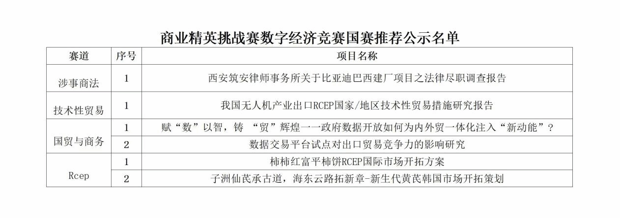 商业精英挑战赛数字经济竞赛是由全国高校商业精英挑战赛国际贸易竞赛是由中国国际贸易促进委员会商业行业委员会(以下简称“中国贸促会商业行业委员会”)牵头主办的国家级学科竞赛活动。经过多年的培育,全国高校商业精英挑战赛国际贸易竞赛业已发展成为我国国际经贸教育领域,基于校企合作的规模最大的综合实践平台和学科竞 赛活动。根据中国高等教育学会高校竞赛评估与管理体系研究工作组发布的《2021全国普通高校大学生竞赛排行榜》,全国高校商业精英挑战赛国际贸易竞赛已纳入该竞赛排行榜,为我校认定的一类B层级学科竞赛。