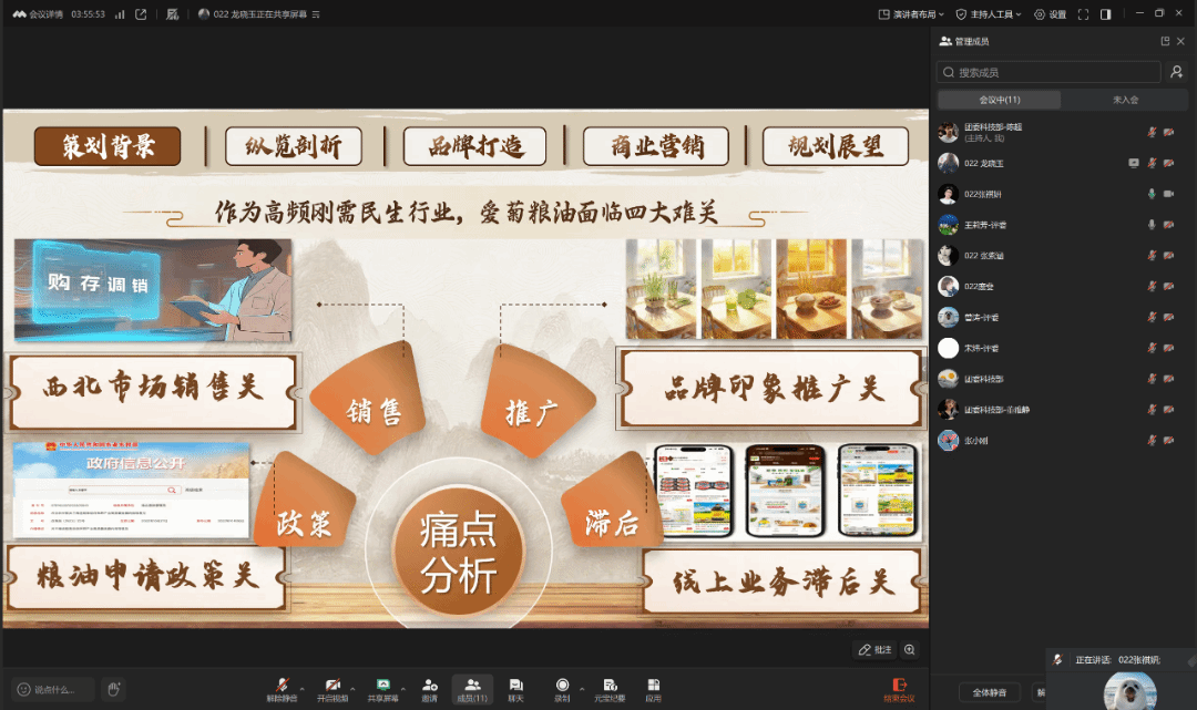 本次赛事共有44支参赛队伍分为两组同台竞技,最终10支队伍凭借优异表现脱颖而出,成功晋级国赛。展示环节中,参赛队员着装规范、精神饱满,在规定时间内通过屏幕共享、视频展示等形式,从品牌定位、产品战略规划、营销布局等多个维度,全面呈现了兼具专业性与创新性的品牌策划方案,充分展现了扎实的专业知识与出色的策划创新能力。